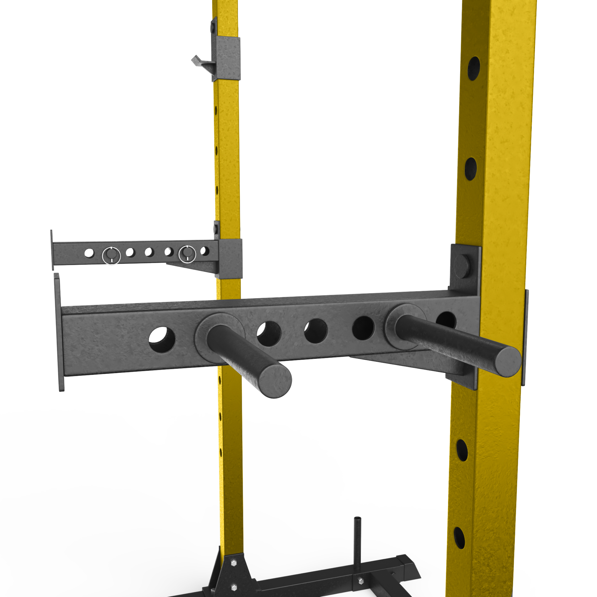 2. Регулируемая конструкция: возможность регулировки высоты упоров с шагом 8 см, чтобы она соответствовала вашему росту и предпочтениям в тренировке. Это позволяет создать оптимальные условия для эффективного тренировочного процесса. Благодаря регулируемым стопорам безопасности, силовая стойка подходит для пользователей любого роста. В