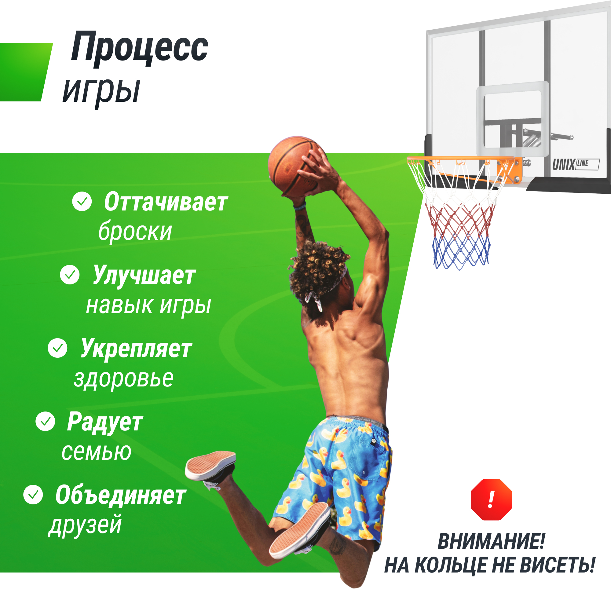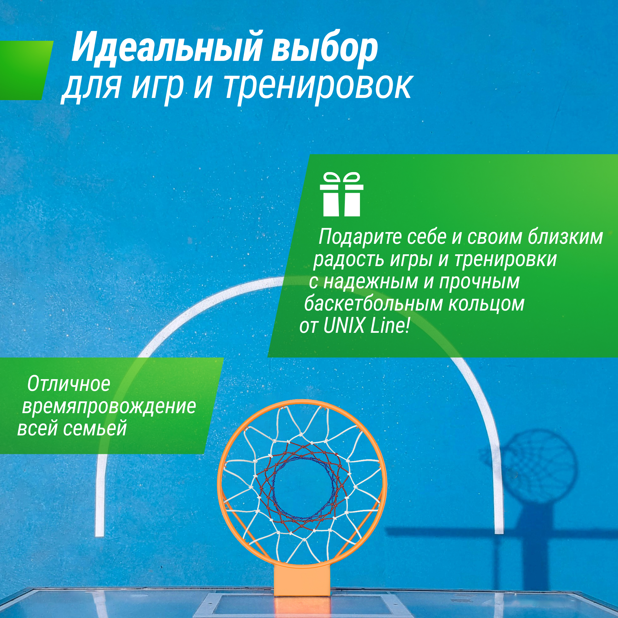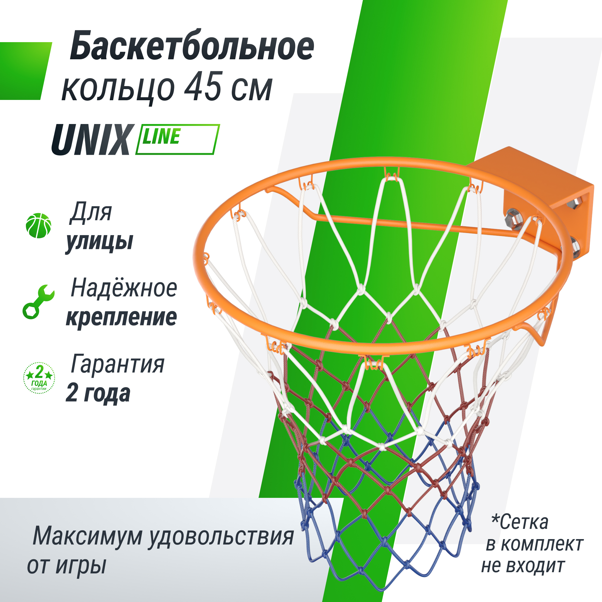 Баскетбольное кольцо UNIX Line с олимпийским диаметром 45 см предлагает непревзойденное качество и долговечность.