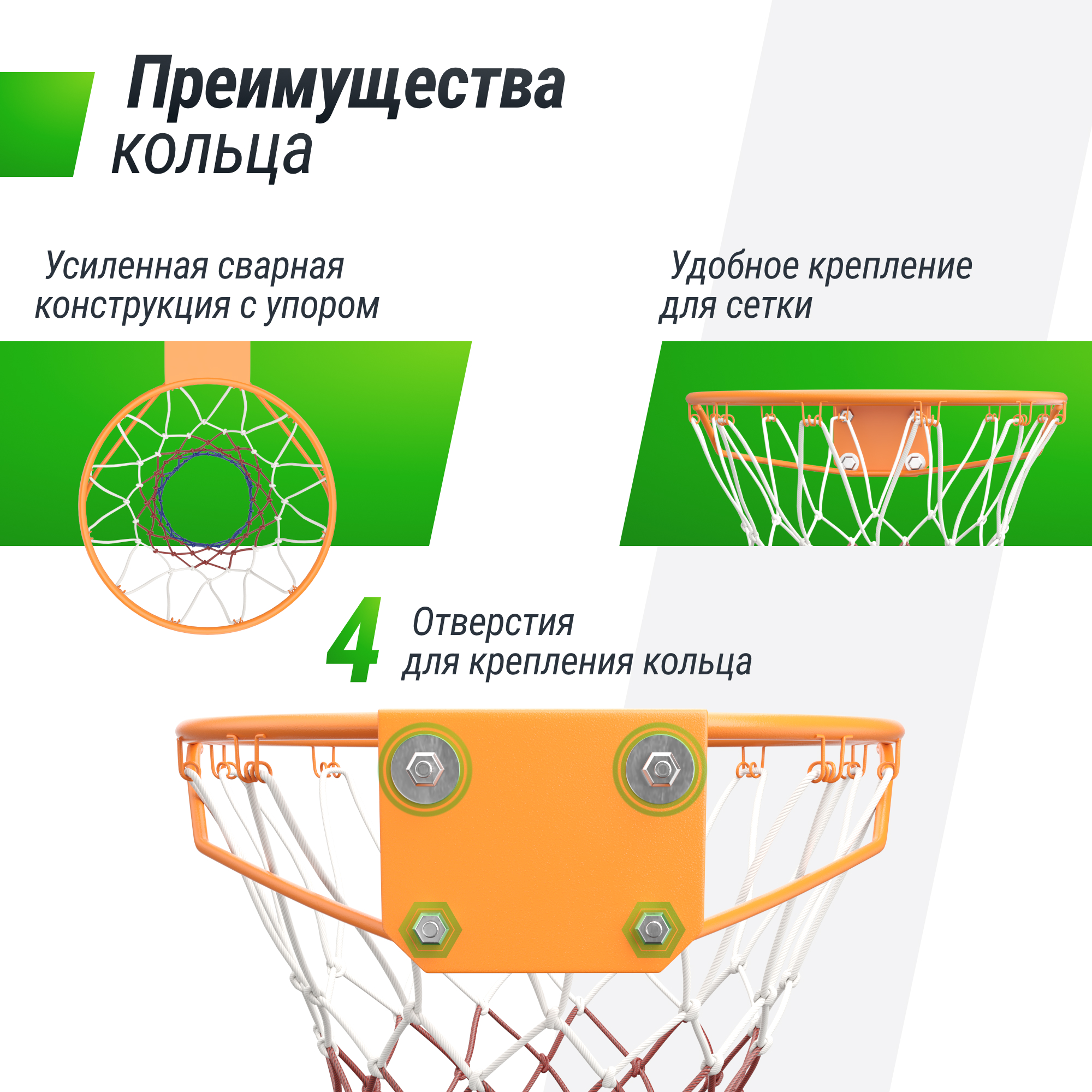 Баскетбольное кольцо легко монтируется и подходит для установки на улице. Его прочная конструкция обеспечивает стабильность во время игры, а качественные материалы защищают от коррозии и воздействия погодных условий. Усиленное баскетбольное кольцо гарантирует долгий срок службы и безопасность во время игры. Данная модель отлично подойдет в качестве замены уже имеющемуся старому оборудованию.