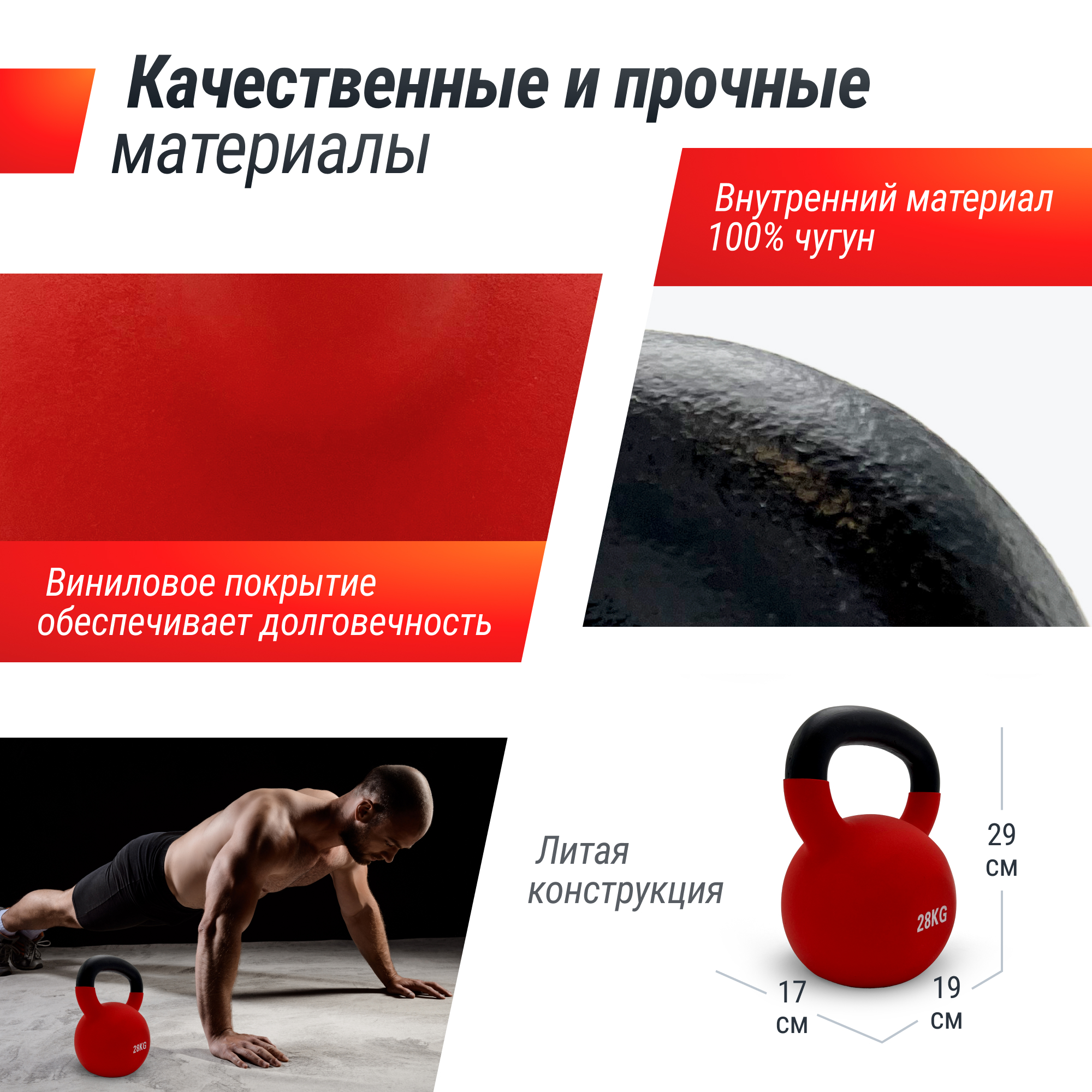 Виниловая гиря доступна в различных весах, что позволяет выбрать оптимальный вариант для каждого уровня подготовки. Гирю весом 4 кг, 8 кг и 12 кг можно использовать как элемент фитнеса для женщин, а более тяжелые веса – 16 кг, 20 кг, 24 кг, 28 кг и 32 кг в кроссфите для мужчин. Благодаря прочной конструкции, она прослужит долгое время и станет незаменимым инструментом для достижения новых